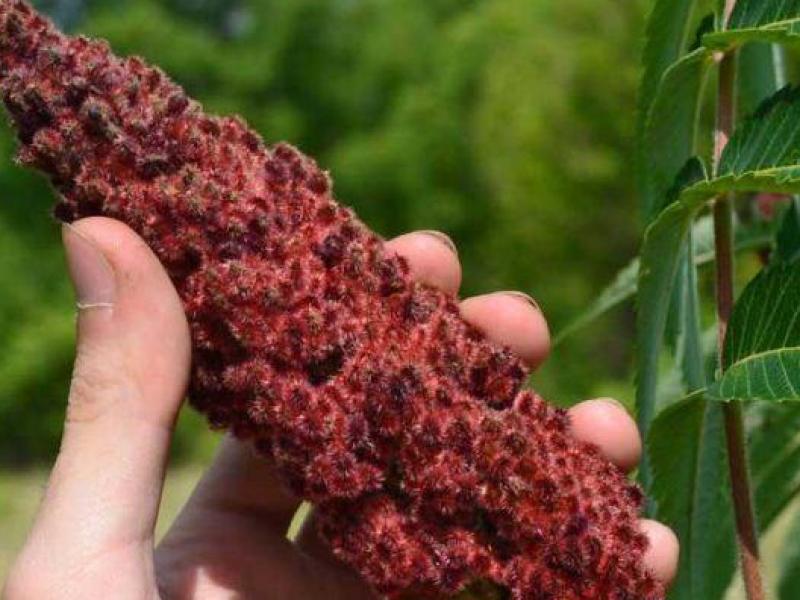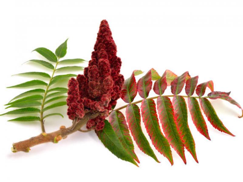 Sumac , also spelled sumach,is any one of about 35 species of flowering plants in the genus Rhus and related genera in the family Anacardiaceae. It grows in subtropical and temperate regions throughout the world, especially in East Asia, Africa, and North America